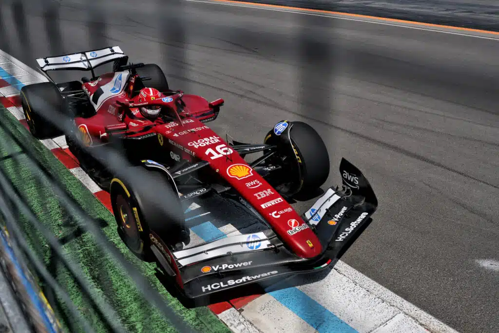 23:07 Leclerc commette un errore, distratto da Hadjar davanti a lui