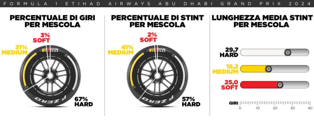Il Gran Premio di Abu Dhabi non chiude soltanto la stagione, ma segna anche l’ultima apparizione degli pneumatici attuali, in uso dal 2022. Dalla prossima annata, infatti, le gomme saranno leggermente più strette pur mantenendo il cerchio da 18 pollici, per adattarsi alle nuove monoposto previste dal regolamento tecnico.