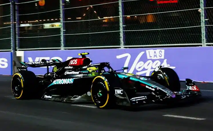Sotto i riflettori di Las Vegas, Mercedes fa scintille con la doppietta nel primo turno di prove libere. Il migliore è stato Lewis Hamilton, autore del miglior tempo in 1:35.001 che ha preceduto di 4 decimi il compagno di squadra, George Russell. Lando Norris, chiude in terza posizione, seguito dalla Ferrari di Charles Leclerc.