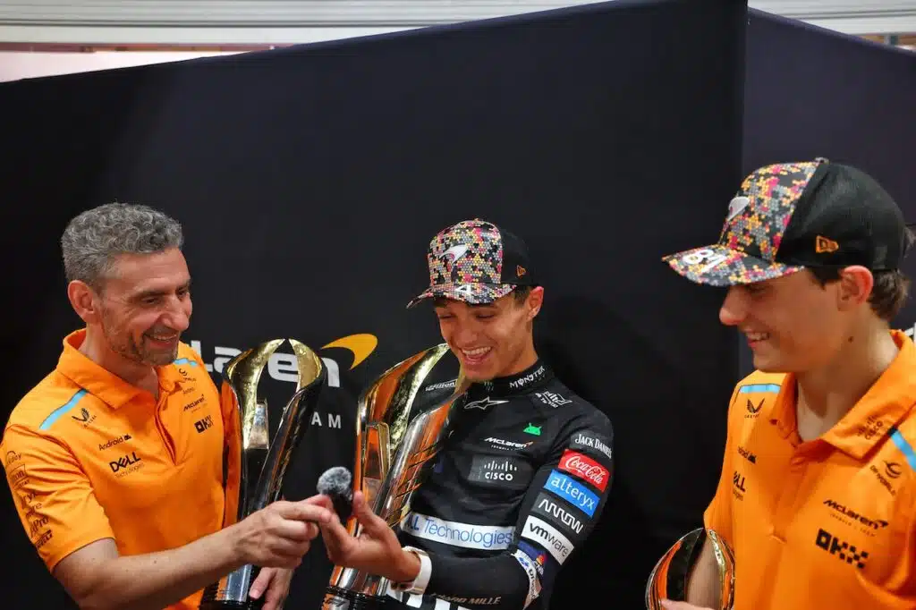 “Quella di Singapore è stata una serata straordinaria – ha detto Andrea Stella, team principal della McLaren. Lando ha dominato, mentre Oscar ha rimontato alla grande fino alla terza posizione. Riuscire a ottenere due vittorie consecutive rappresenta un altro grande traguardo per noi: la macchina è stata competitiva per tutto il weekend, e questo ci rende fiduciosi per il resto della stagione. Abbiamo aumentato il nostro vantaggio nel campionato costruttori, e Lando ha ridotto il distacco da Max nella lotta per il titolo piloti. Ci prenderemo un momento per celebrare questi successi, prima di concentrarci già nei prossimi giorni sulla prossima serie di gare”.